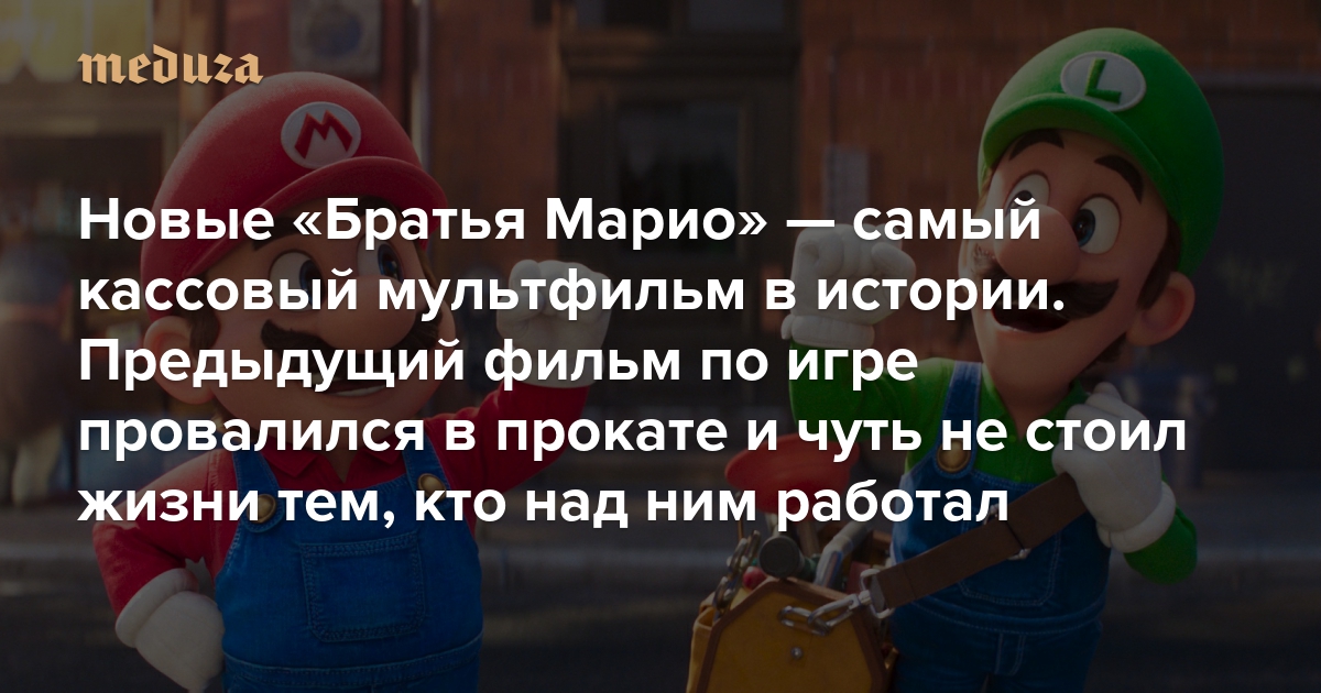 Новые «Братья Марио» — самый кассовый мультфильм в истории Предыдущий фильм по легендарной игре вышел 30 лет назад, провалился в прокате и чуть не стоил жизни тем, кто над ним работал. «Медуза» рассказывает про обе картины