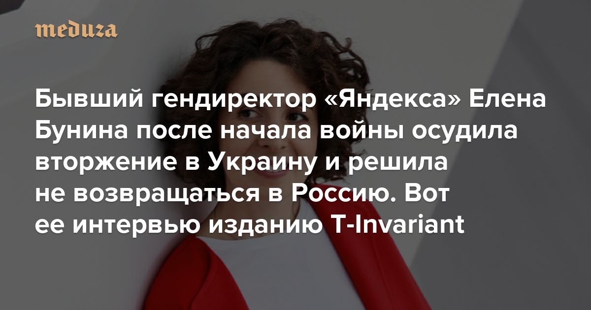«Потом ты начинаешь думать, а не во зло ли было все, что ты делал?» Бывший гендиректор «Яндекса» Елена Бунина после начала войны осудила вторжение в Украину и решила не возвращаться в Россию. Вот ее интервью изданию T-Invariant