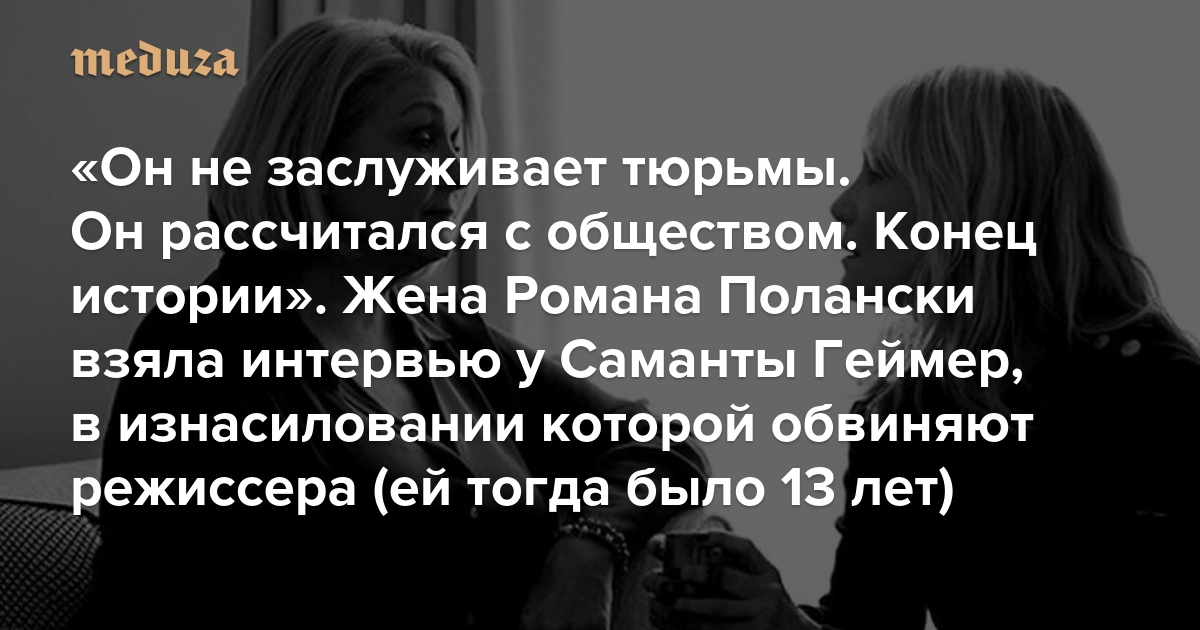 «Он не заслуживает тюрьмы. Он рассчитался с обществом. Вот и все, конец истории» Жена Романа Полански взяла интервью у Саманты Геймер, в изнасиловании которой обвиняют режиссера (ей тогда было 13 лет)