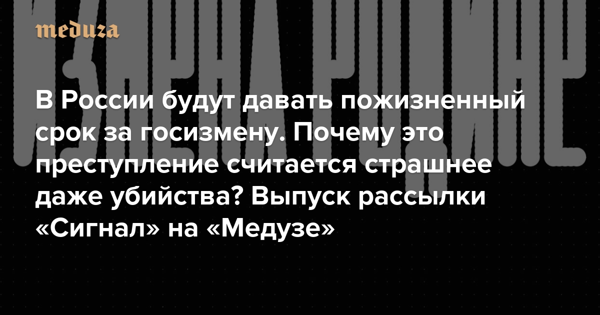 В России будут давать пожизненный срок за госизмену. Почему это преступление считается страшнее даже убийства? Выпуск рассылки «Сигнал» на «Медузе»