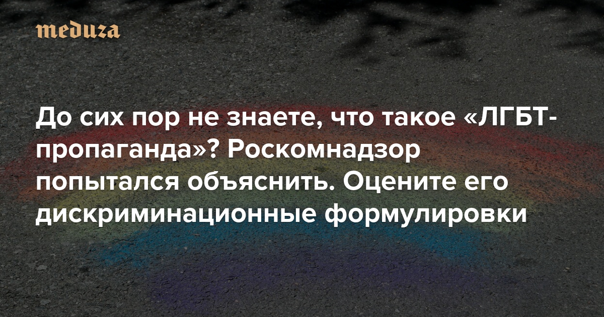 До сих пор не знаете, что такое «ЛГБТ-пропаганда»? Роскомнадзор попытался объяснить Оцените его дискриминационные формулировки