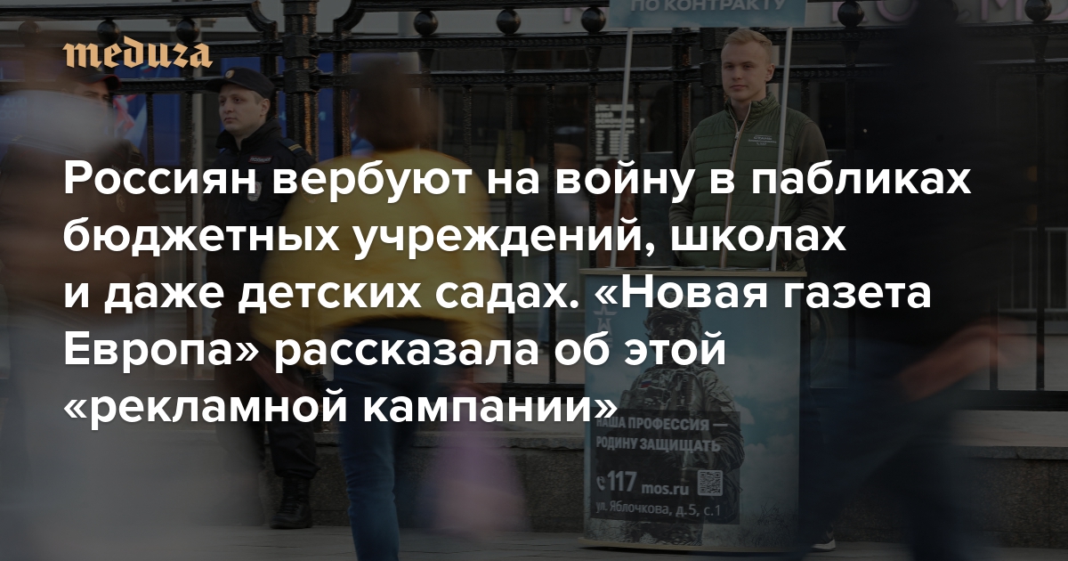 Россиян вербуют на войну в пабликах бюджетных учреждений, школах и даже детских садах Это десятки тысяч объявлений — и их становится все больше. «Новая газета Европа» рассказала об этой «рекламной кампании»