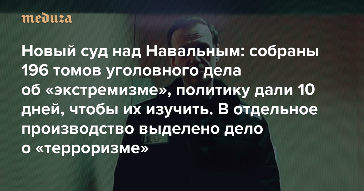 Новый суд над Навальным: собраны 196 томов уголовного дела об «экстремизме», политику дали 10 дней, чтобы их изучить В отдельное производство выделено дело о «терроризме» — и это может быть пожизненный срок