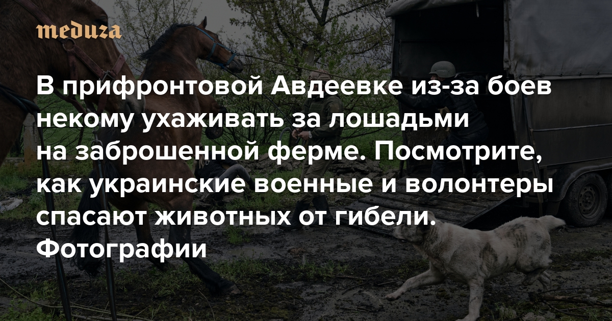 Украинские военные и волонтеры эвакуируют лошадей с заброшенной конной фермы в Авдеевке — пригорода аннексированного Россией Донецка. По данным украинских Сил обороны Таврического направления, опубликованным 24 апреля, российские войска перебросили в район Авдеевки танковую бригаду, вероятно, чтобы использовать ее для штурма города. В РФ не комментировали эти данные