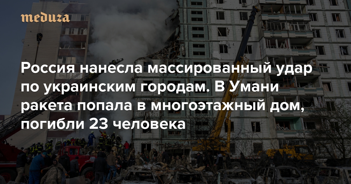 Россия нанесла массированный удар по украинским городам. В Умани ракета попала в многоэтажный дом, погибли 23 человека