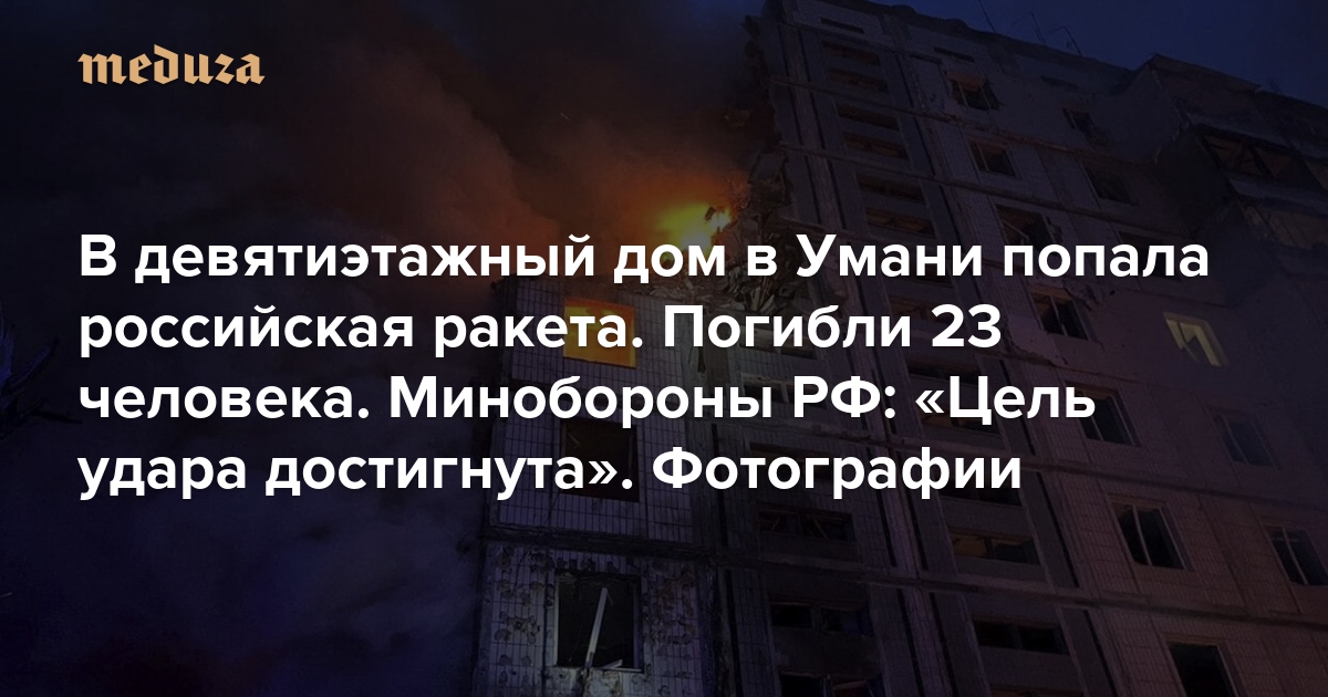 В девятиэтажный дом в Умани попала российская ракета. Погибли 23 человека. Минобороны РФ: «Цель удара достигнута» Четыреста двадцать девятый день войны. Фотографии