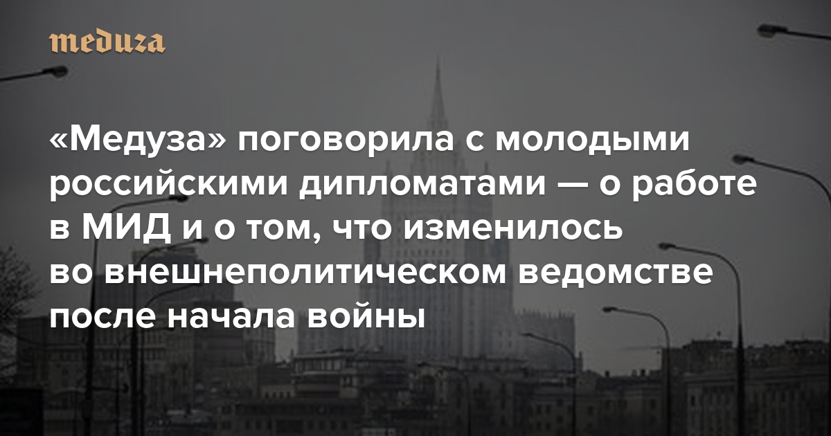 «Если страна ведет войну — значит, мы не выполнили свою функцию» «Медуза» поговорила с молодыми российскими дипломатами — о работе в МИД и о том, что изменилось во внешнеполитическом ведомстве после начала войны