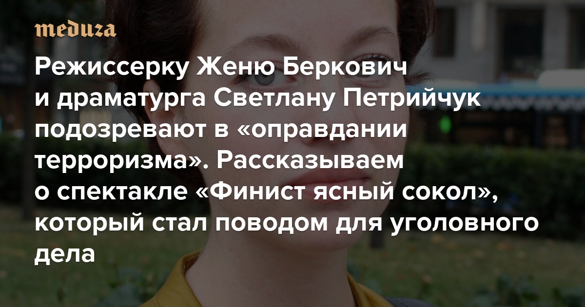 Режиссерку Женю Беркович и драматурга Светлану Петрийчук подозревают в «оправдании терроризма» Рассказываем о спектакле «Финист ясный сокол», который стал поводом для уголовного дела