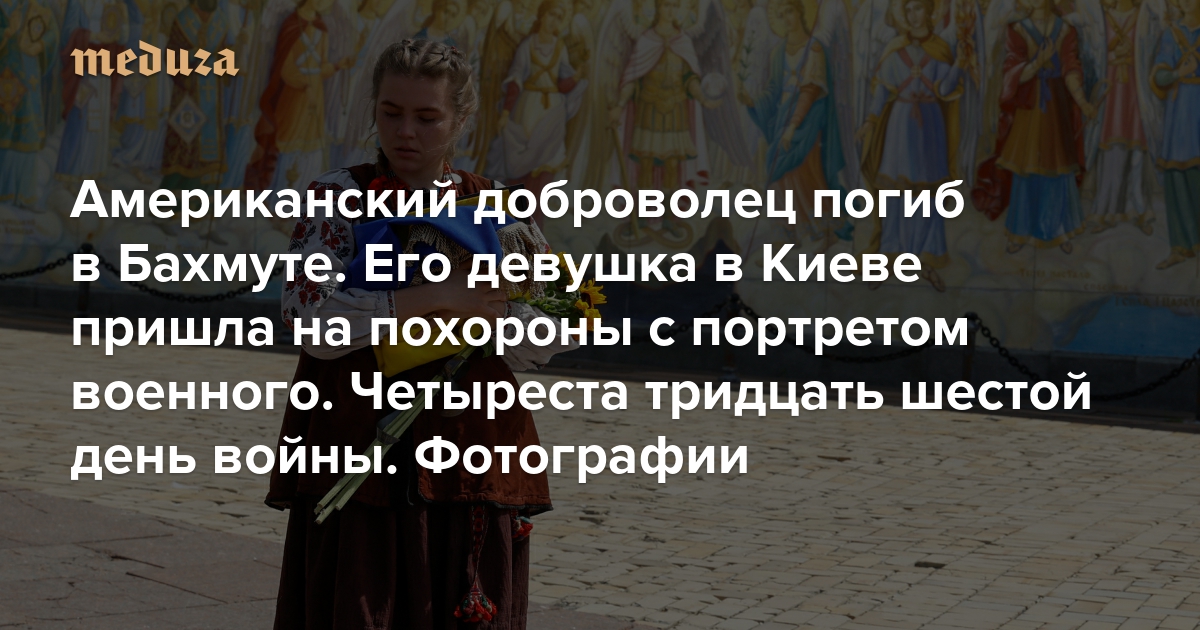 Американский доброволец погиб в Бахмуте. Его девушка в Киеве пришла на похороны с портретом военного Четыреста тридцать шестой день войны. Фотографии