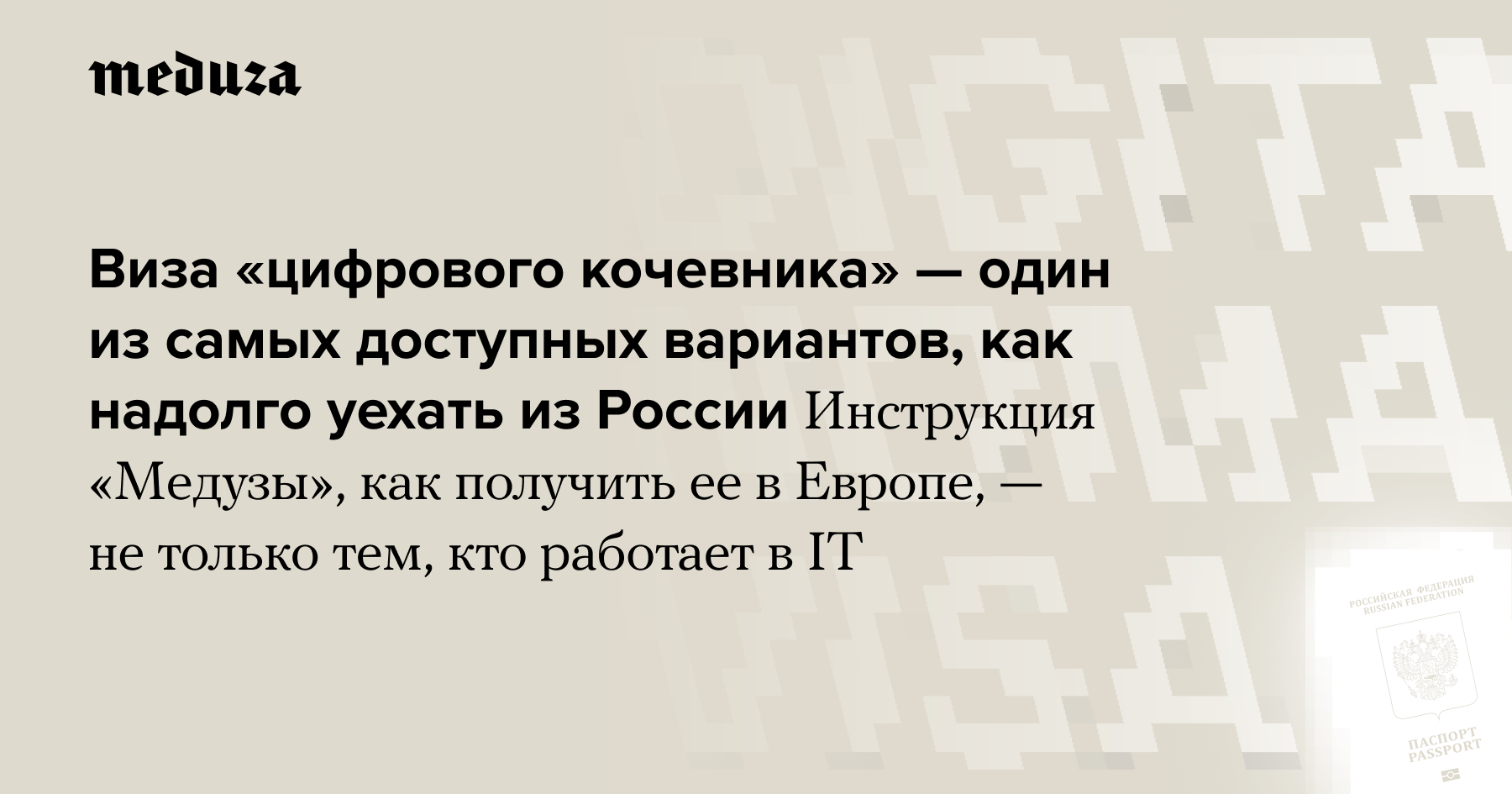Виза цифрового кочевника — один из самых доступных вариантов, как надолго уехать из России Инструкция «Медузы», как получить ее в Европе — не только тем, кто работает в IT