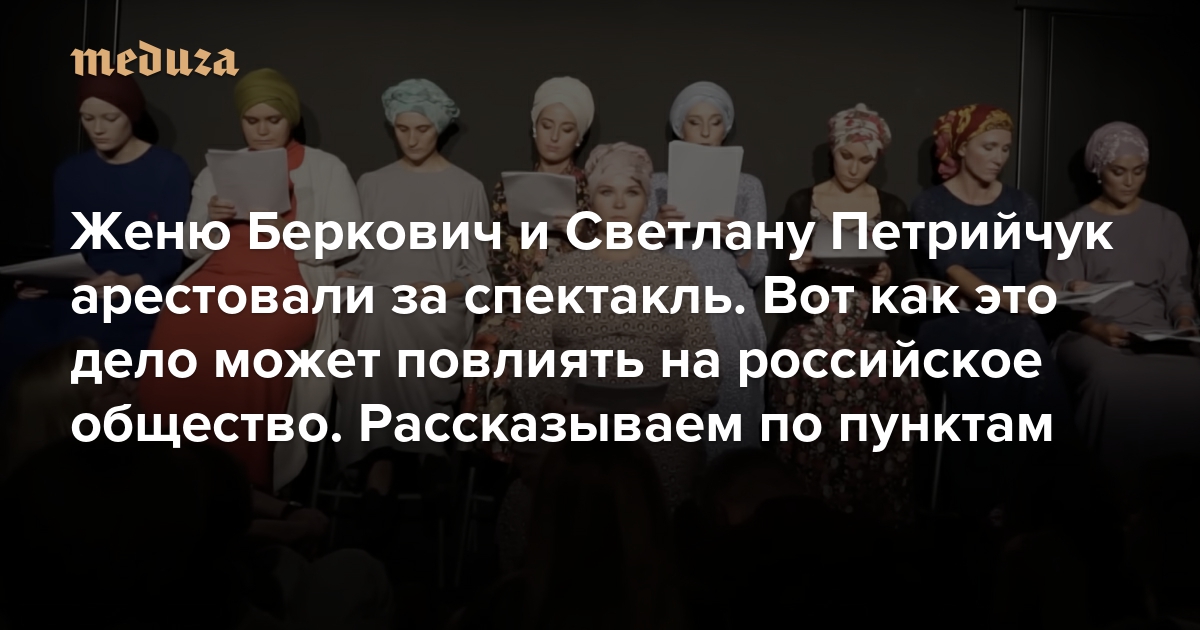Женю Беркович и Светлану Петрийчук арестовали за спектакль. Вот как это дело может повлиять на российское общество Рассказываем по пунктам