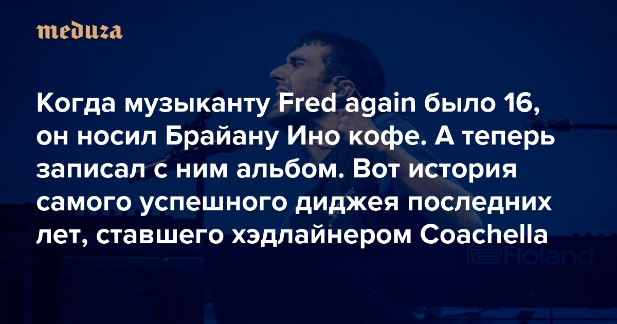 Когда музыканту Fred again было 16, он носил Брайану Ино кофе. Теперь он записал с ним альбом Вот история самого успешного диджея последних лет, который стал хедлайнером Coachella (в трио со Скриллексом и Four Tet)