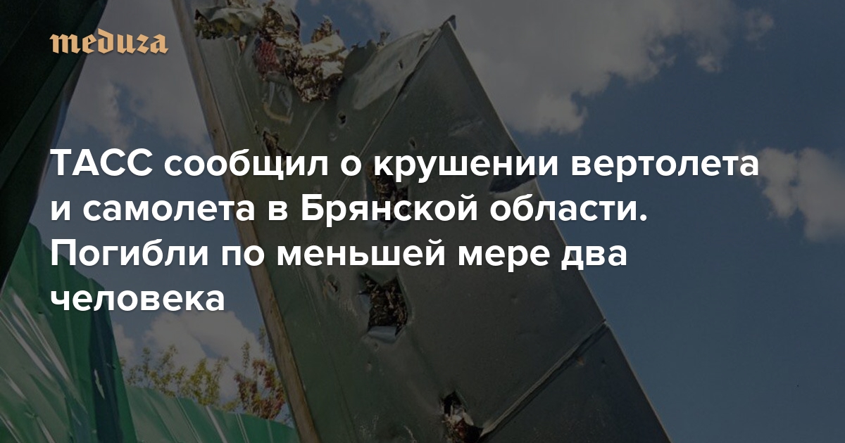 ТАСС сообщил о крушении вертолета и самолета в Брянской области. Погибли по меньшей мере два человека