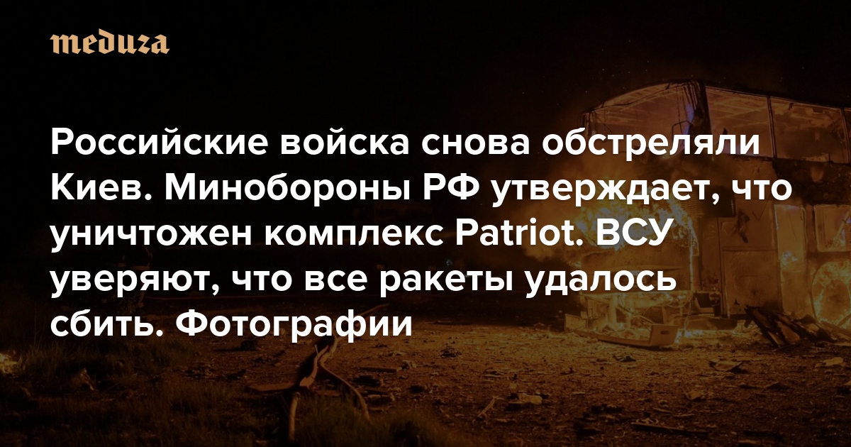 Российские войска снова обстреляли Киев. Минобороны РФ утверждает, что уничтожен комплекс Patriot. ВСУ уверяют, что все ракеты удалось сбить Четыреста сорок седьмой день войны. Фотографии