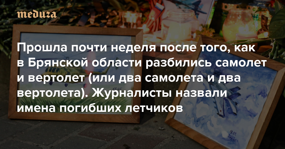 Прошла почти неделя после того, как в Брянской области разбились самолет и вертолет (или два самолета и два вертолета) Журналисты назвали имена погибших летчиков. Власти их не называют