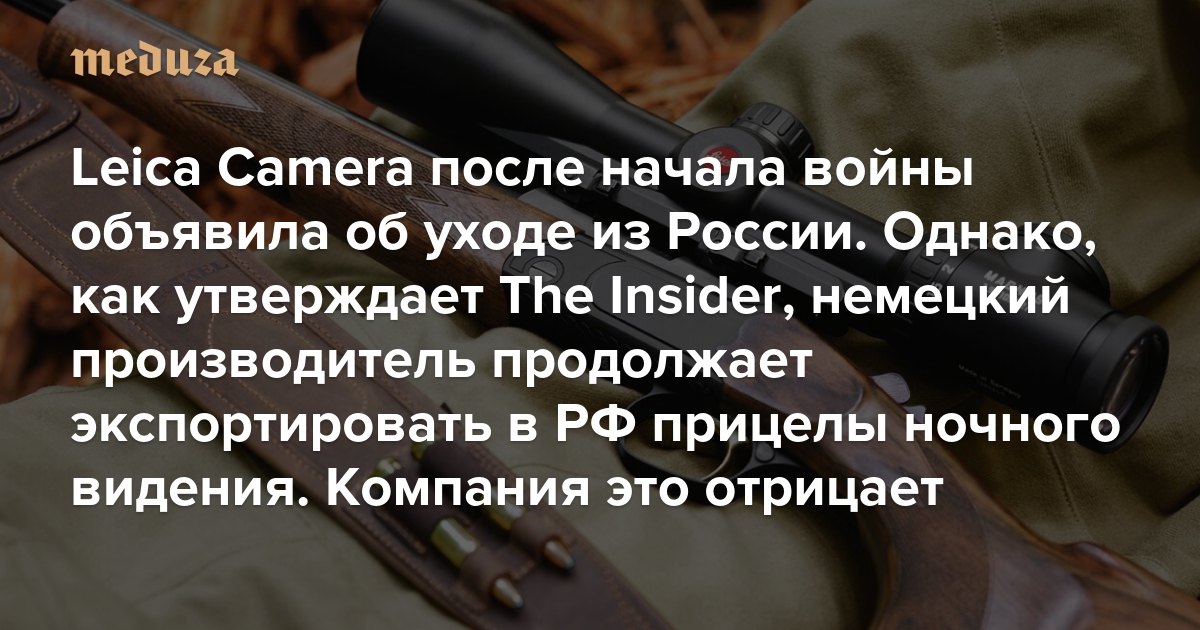 Leica Camera после начала войны объявила об уходе из России. Однако, как утверждает The Insider, немецкий производитель продолжает экспортировать в РФ прицелы ночного видения. Компания это отрицает