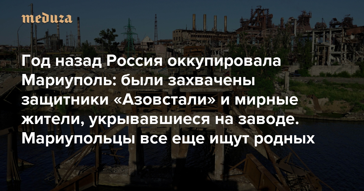 Россия начала обстреливать Мариуполь в первые дни вторжения. Уже в начале марта россияне окружили город. К маю 2022 года единственным очагом сопротивления тут оставался комбинат «Азовсталь» — крупный металлургический завод на побережье Азовского моря. Его обороняли служащие ВСУ, в том числе бойцы полка «Азов». На территории комбината укрывались мирные жители и дети. В середине мая Генштаб ВСУ приказал командирам «сохранить жизнь личного состава», находящегося на «Азовстали». 20 мая Минобороны РФ сообщило о «полном освобождении» комбината. Всего, по словам Владимира Зеленского, в плен попало более двух с половиной тысяч военных. Некоторые из них смогли вернуться в Украину в результате взаимных обменов пленными; о судьбе других практически ничего не известно. «Медуза» рассказывает, как мариупольцы, укрывавшиеся на «Азовстали», и их родные ищут своих близких — и пытаются справиться с воспоминаниями об осаде и обстрелах.