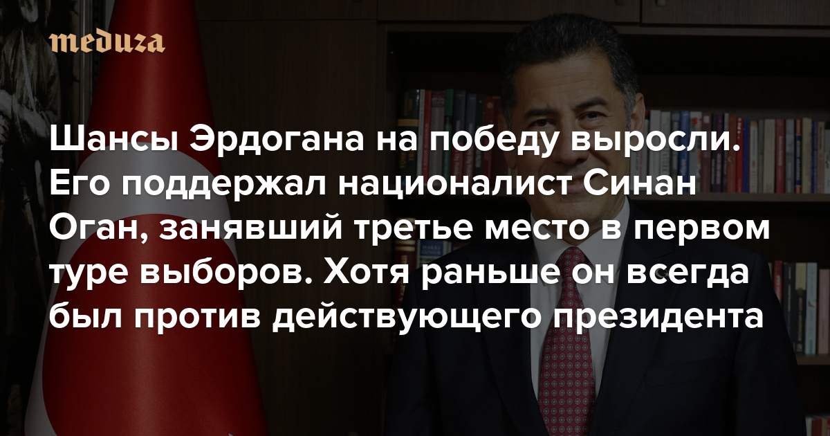 Шансы Эрдогана на победу выросли. Его поддержал националист Синан Оган, занявший третье место в первом туре выборов Он защитил диссертацию в МГИМО и раньше был всегда против действующего президента