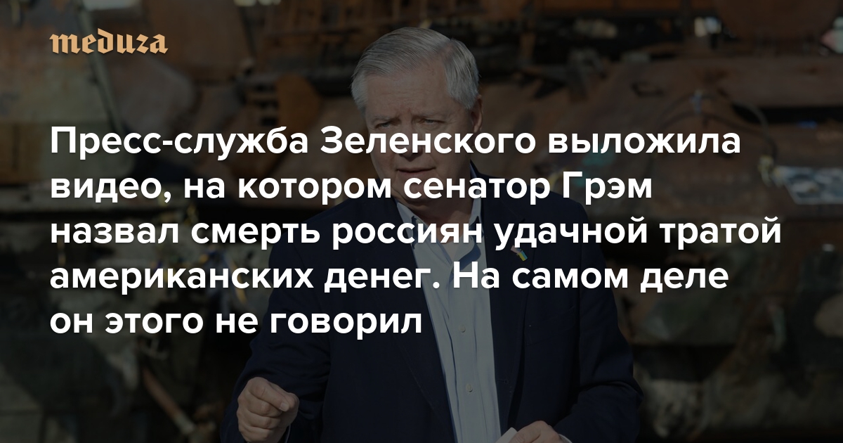 Пресс-служба Зеленского выложила видео, которое очень понравилось российской пропаганде. В нем сенатор Грэм якобы назвал смерть россиян удачной тратой американских денег На самом деле он этого не говорил
