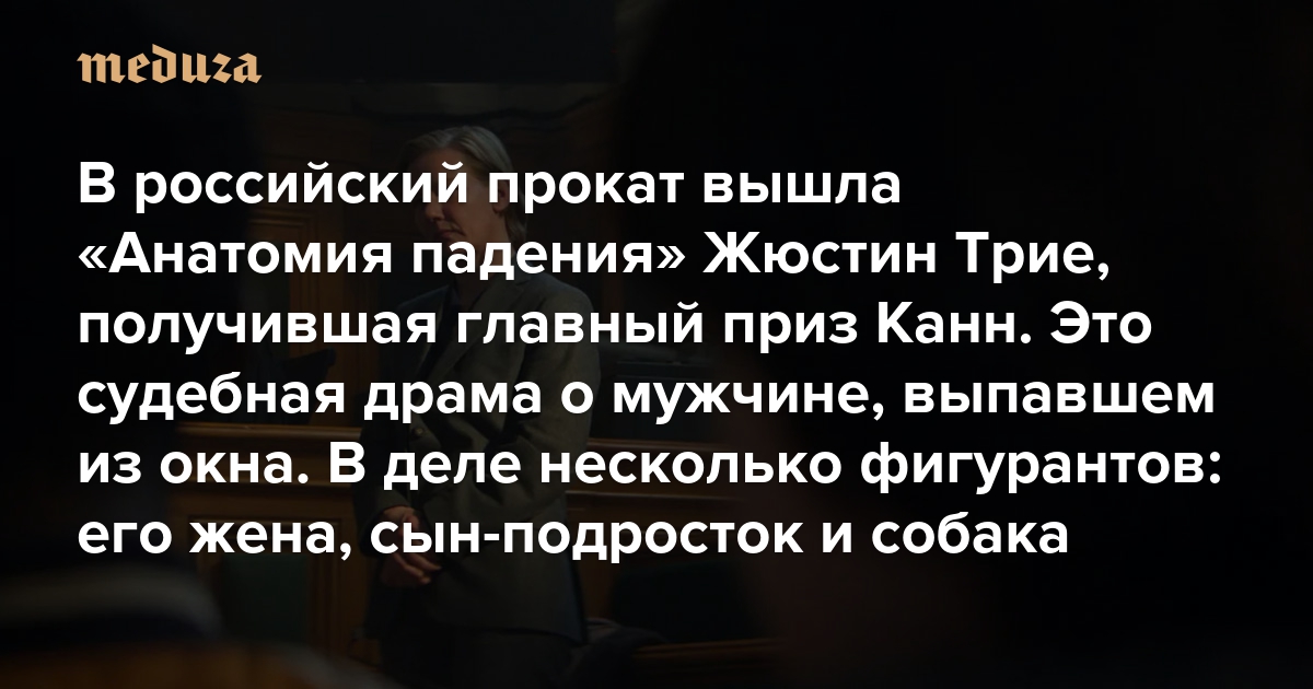 В российский прокат вышла «Анатомия падения» Жюстин Трие, получившая главный приз Канн Это судебная драма о мужчине, выпавшем из окна. В деле несколько фигурантов: его жена, сын-подросток и собака