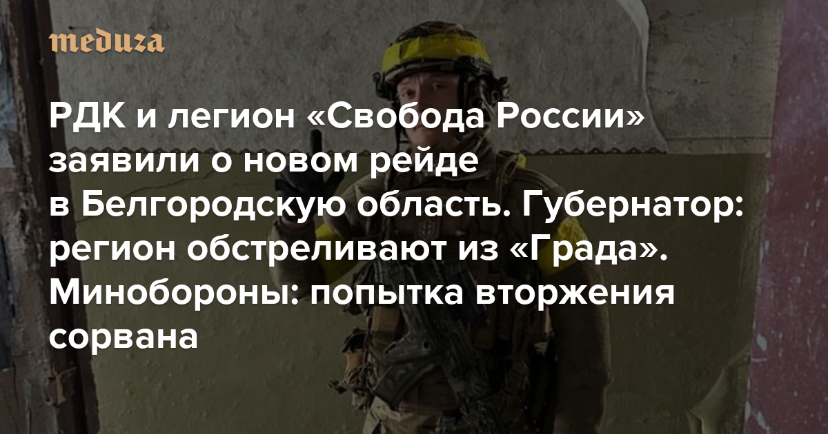 «Русский добровольческий корпус» и легион «Свобода России» заявили о новом рейде в Белгородскую область Губернатор: регион обстреливают из «Града». Минобороны РФ: попытка вторжения сорвана