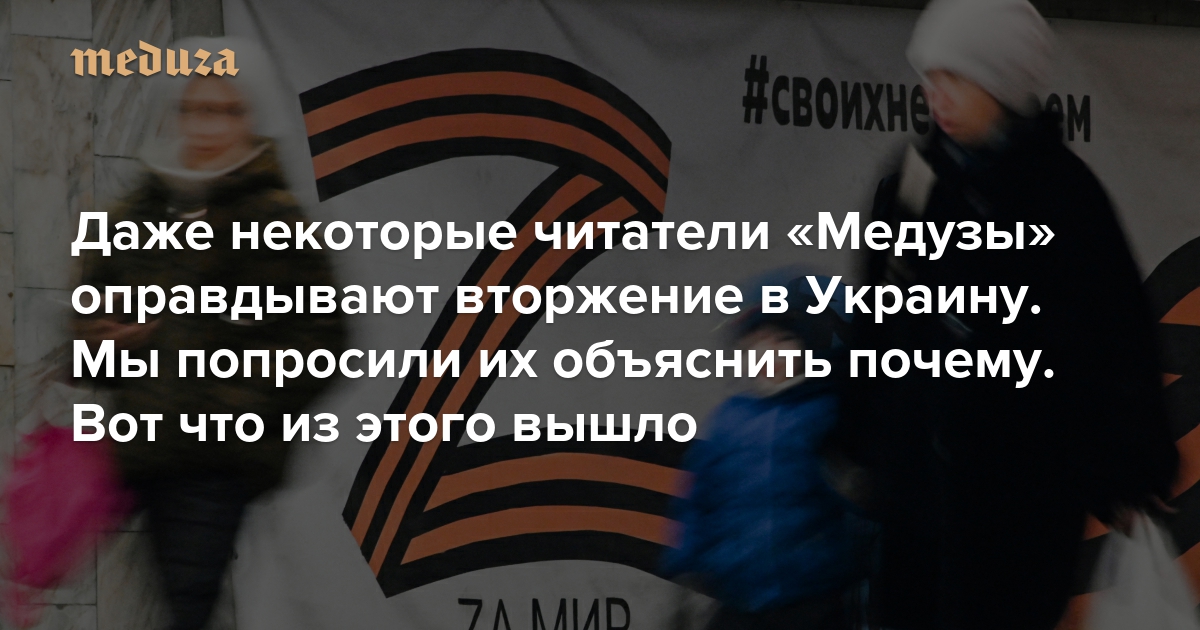 Даже некоторые читатели «Медузы» оправдывают вторжение в Украину. Мы попросили их объяснить почему. Вот что из этого вышло Многие эти письма физически больно читать. Тем не менее мы считаем их важным документом