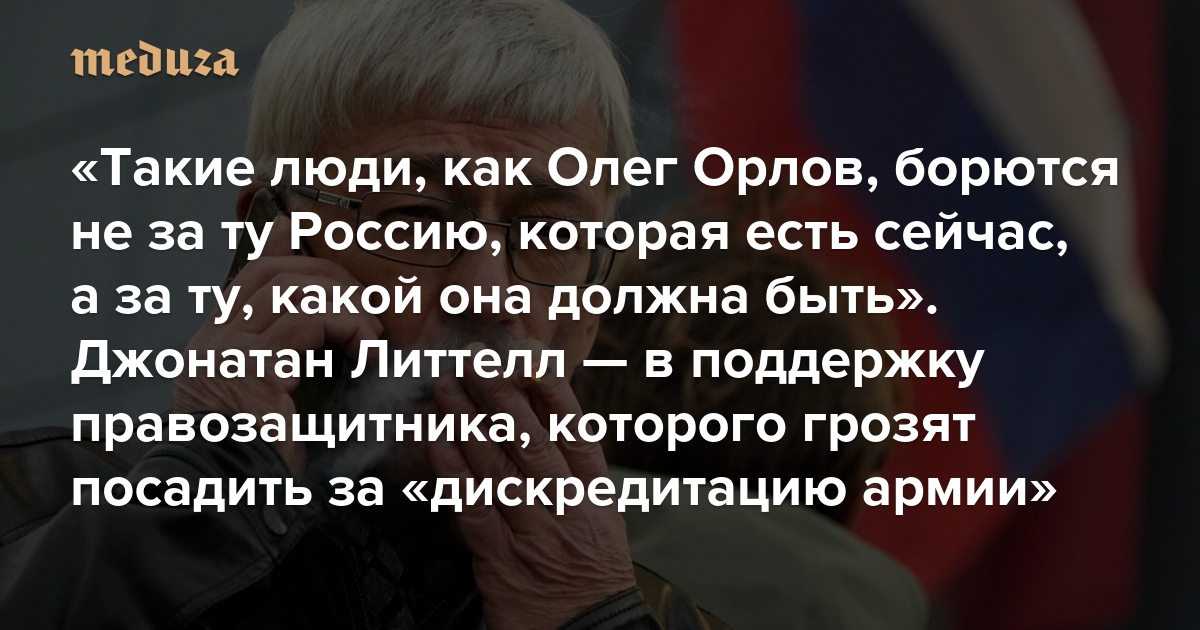Такие люди, как Олег Орлов, борются не за ту Россию, которая есть сейчас, а за ту, какой она должна быть Джонатан Литтелл — в поддержку правозащитника, которого грозят посадить за «дискредитацию армии»