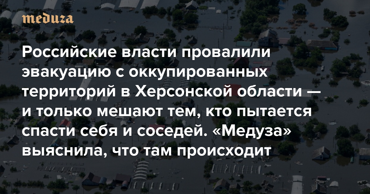 «Они заставляют людей тонуть в своих домах» Российские власти провалили эвакуацию с оккупированных территорий в Херсонской области — и только мешают тем, кто пытается спасти себя и соседей. «Медуза» выяснила, что там происходит