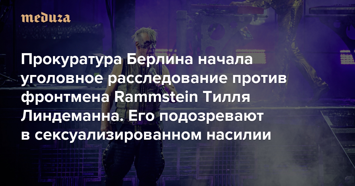Прокуратура Берлина начала уголовное расследование в отношении фронтмена группы Rammstein Тилля Линдеманна. Как сообщают B.Z., Der Spiegel, Bild и другие немецкие издания, его подозревают в сексуализированном насилии.