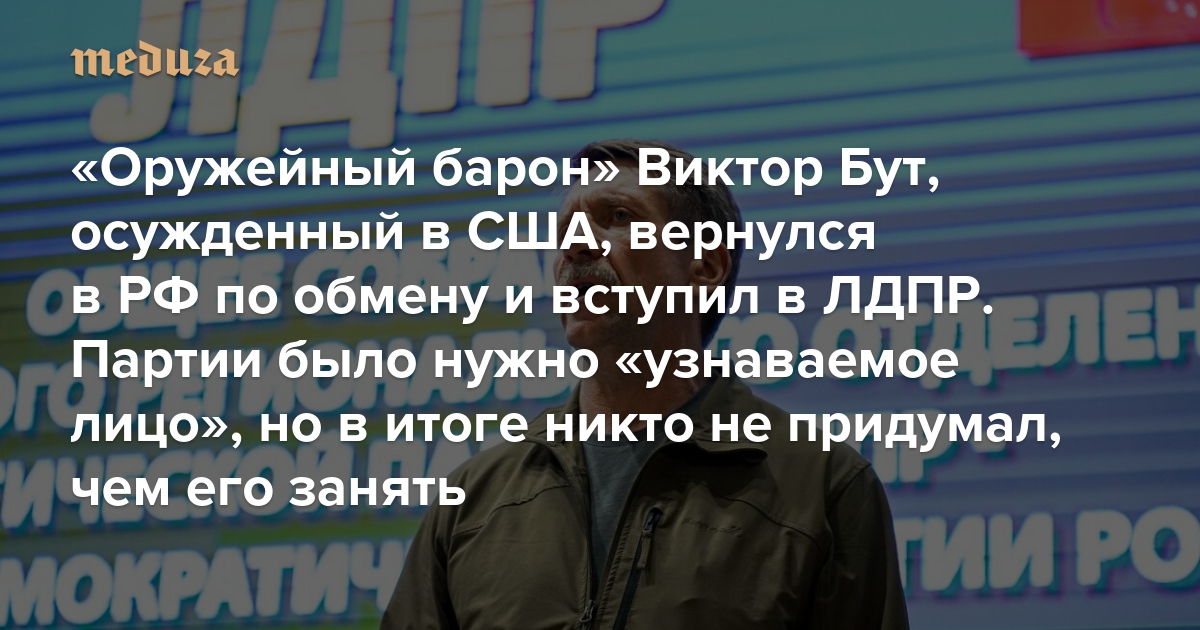 «Оружейный барон» Виктор Бут, осужденный в США, вернулся в РФ по обмену — и вступил в ЛДПР Партии было нужно «узнаваемое лицо», но в итоге никто не придумал, чем его занять (Бут, кажется, сам не понял, что ему делать)