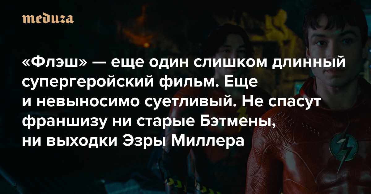 «Флэш» — еще один слишком длинный супергеройский фильм. К тому же невыносимо суетливый Не спасут франшизу ни старые Бэтмены (Майкл Китон и Бен Аффлек), ни выходки Эзры Миллера
