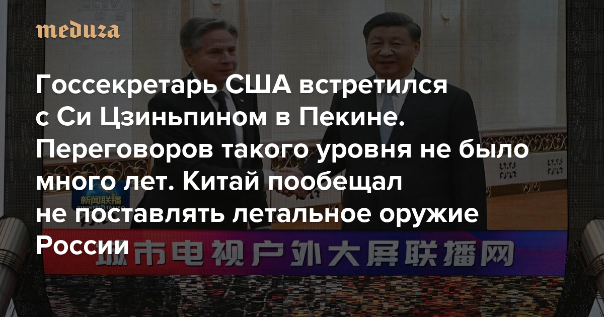 Госсекретарь США встретился с Си Цзиньпином в Пекине. Переговоров такого уровня не было много лет Китай пообещал не поставлять летальное оружие России. И отказался идти на любые уступки по вопросу о Тайване