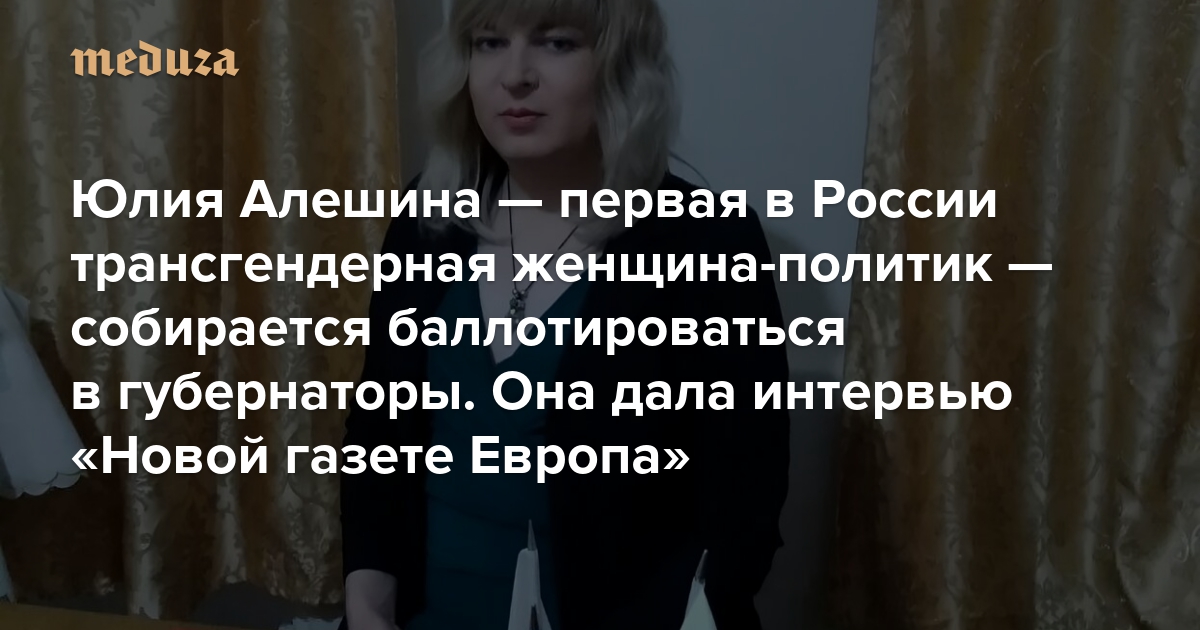 «Пусть это будет моим протестом» Юлия Алешина — первая в России трансгендерная женщина-политик — собирается баллотироваться в губернаторы. Она дала интервью «Новой газете Европа»