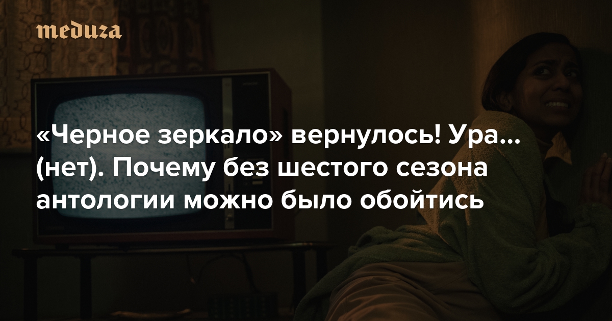 В силу сказанного сериал Чарли Брукера выглядит как идеальная тема для самого себя: медийный феномен, чья популярность объясняется сомнительными человеческими качествами — склонностью к упрощенным идеям и симпатией к любому, кто с этими идеями громко соглашается. В шестом сезоне, вышедшем на Netflix после четырехлетнего перерыва, действительно мелькает самоирония, но какая-то декоративная: она направлена не против самого проекта, а против стримингового контента вообще.