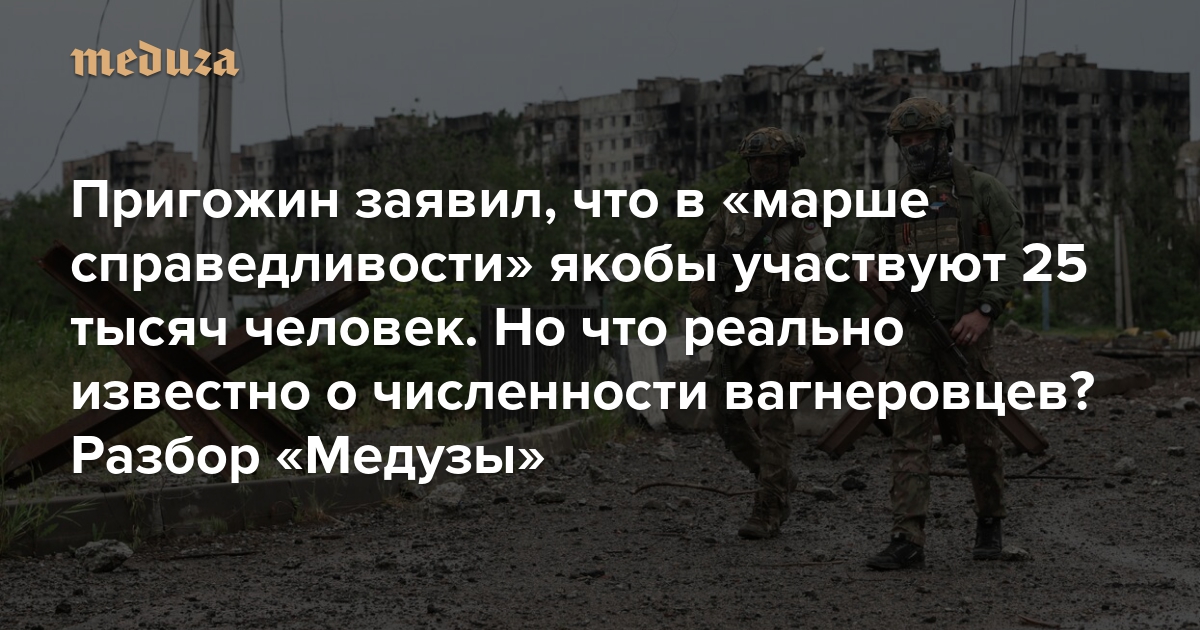 Пригожин заявил, что в «марше справедливости» якобы участвуют 25 тысяч человек. Но что реально известно о численности вагнеровцев? Адекватных данных нет. Максимально короткий разбор «Медузы»