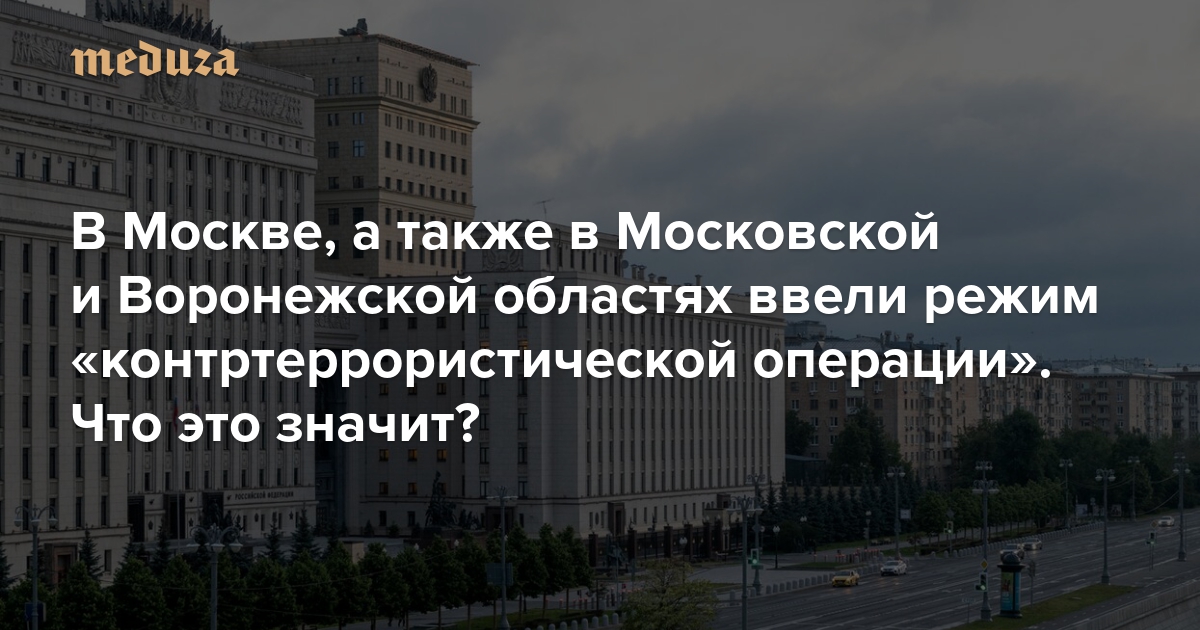 В Москве, а также в Московской и Воронежской областях ввели режим «контртеррористической операции» Теперь силовики смогут законно читать вашу переписку и входить в любые помещения без решения суда
