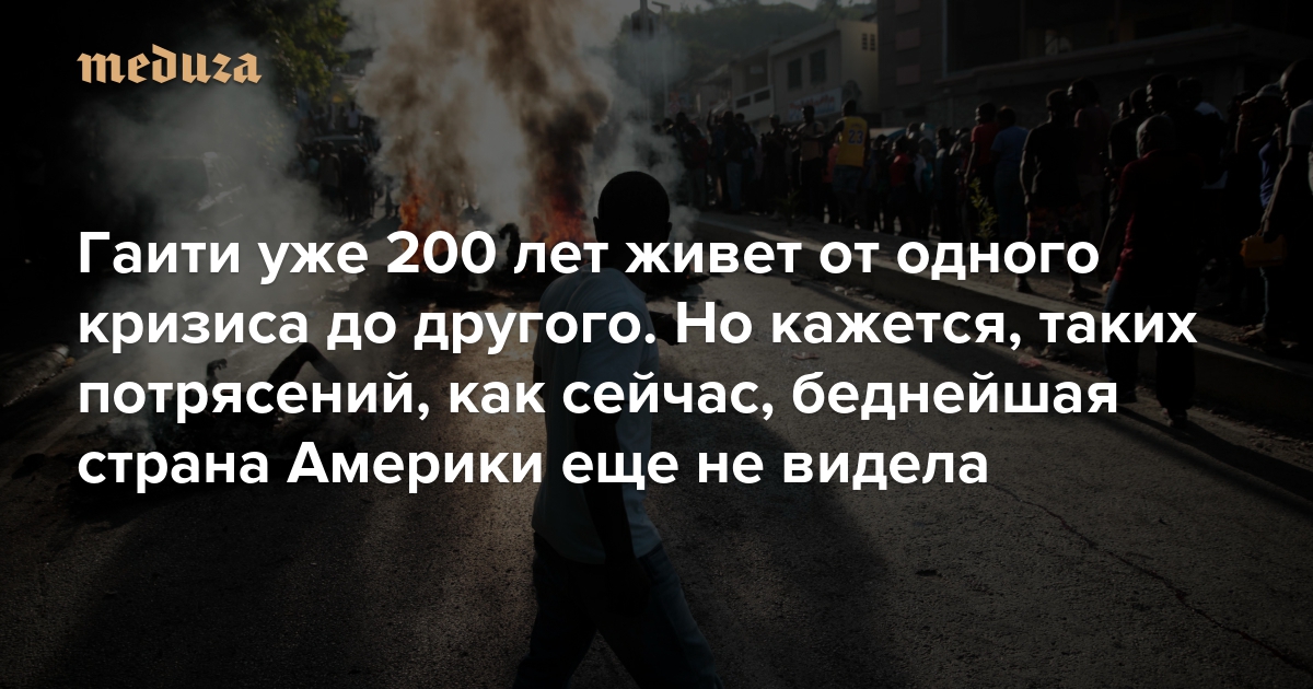 Гаити — государство в Карибском бассейне с населением более 11 миллионов человек — переживает тяжелейший кризис, который фактически поставил под угрозу его существование. В стране не осталось ни одного избранного представителя власти, значительную часть территории контролируют вооруженные банды, миллионам жителей грозит голод, а ООН и США отказываются восстанавливать порядок, несмотря на просьбы правительства страны о международной интервенции. «Медуза» рассказывает, как так вышло — и почему Гаити за 200 лет независимости так и не удалось достичь политической, экономической и социальной стабильности.