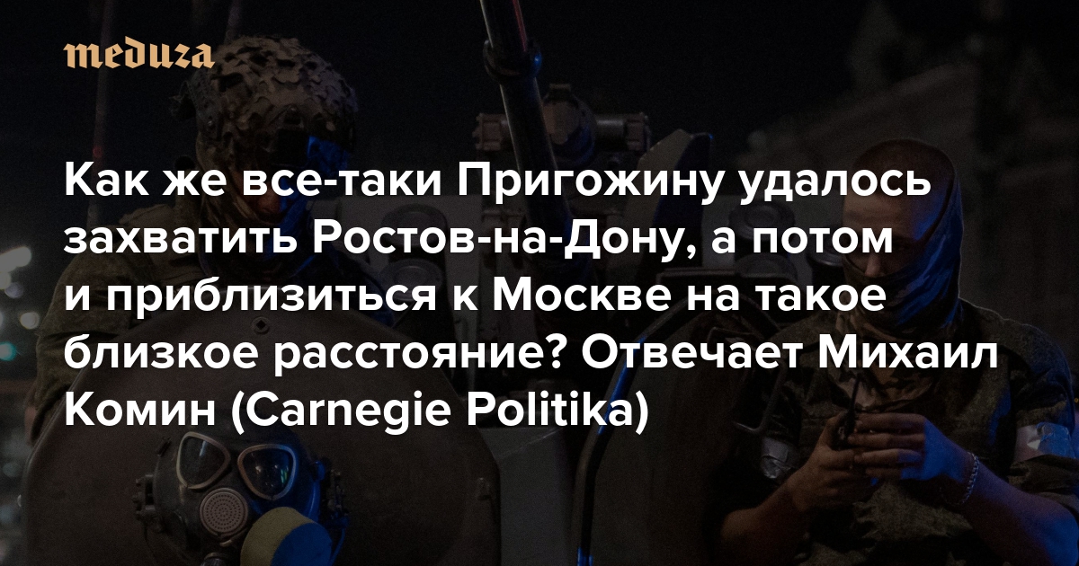 Как же все-таки Пригожину удалось захватить Ростов-на-Дону, а потом и приблизиться к Москве на такое близкое расстояние? Отвечает Михаил Комин (Carnegie Politika)
