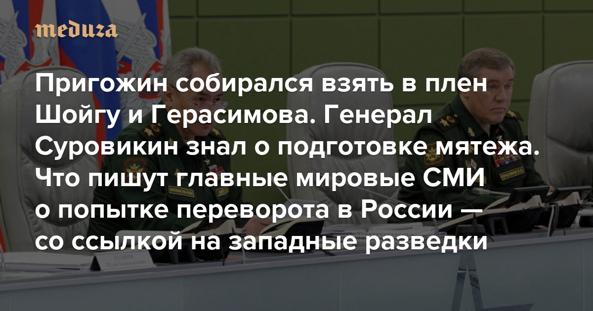 Пригожин собирался взять в плен Шойгу и Герасимова. Генерал Суровикин знал о подготовке мятежа Что пишут главные мировые СМИ о попытке переворота в России — со ссылкой на западные разведки