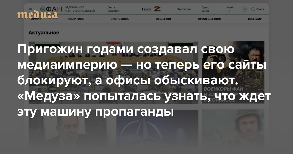 «Работа парализована» Пригожин годами создавал свою медиаимперию — но теперь его сайты блокируют, а офисы обыскивают. «Медуза» попыталась узнать, что ждет эту машину пропаганды