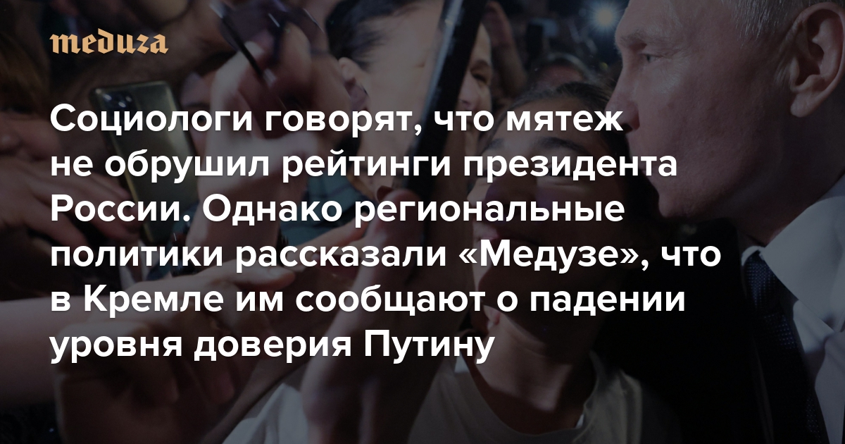 Социологи говорят, что мятеж не обрушил рейтинги президента России. Однако региональные политики рассказали «Медузе», что в Кремле им сообщают о падении уровня доверия Путину на 9–14%