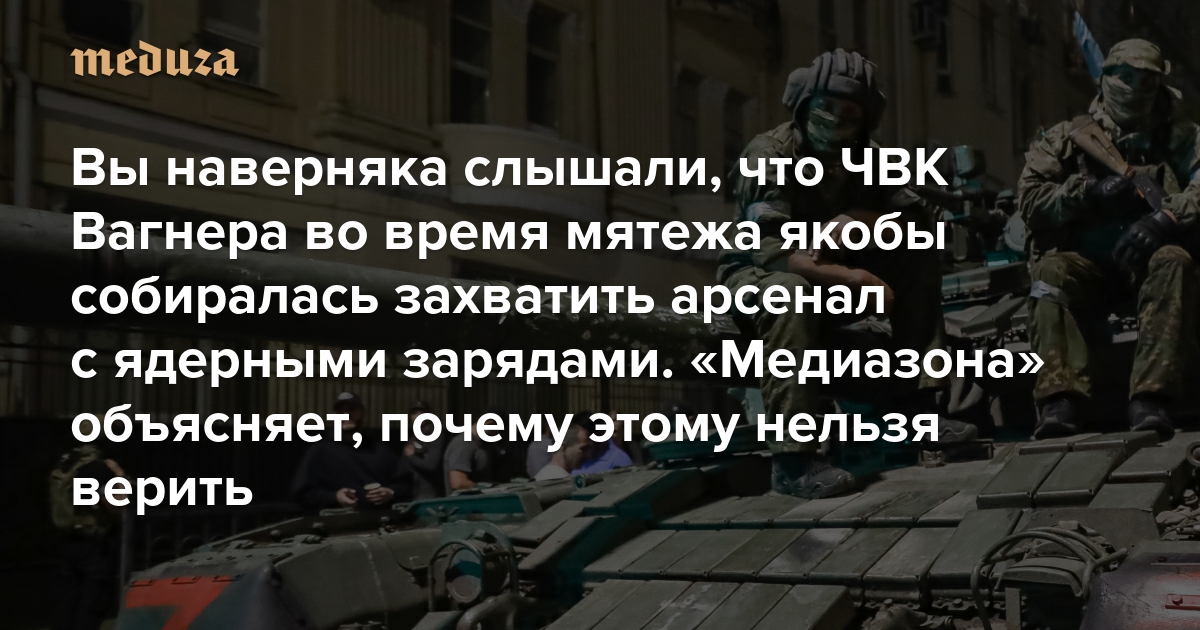 Вы наверняка слышали, что ЧВК Вагнера во время мятежа якобы собиралась захватить арсенал с ядерными зарядами «Медиазона» объясняет, почему этому нельзя верить