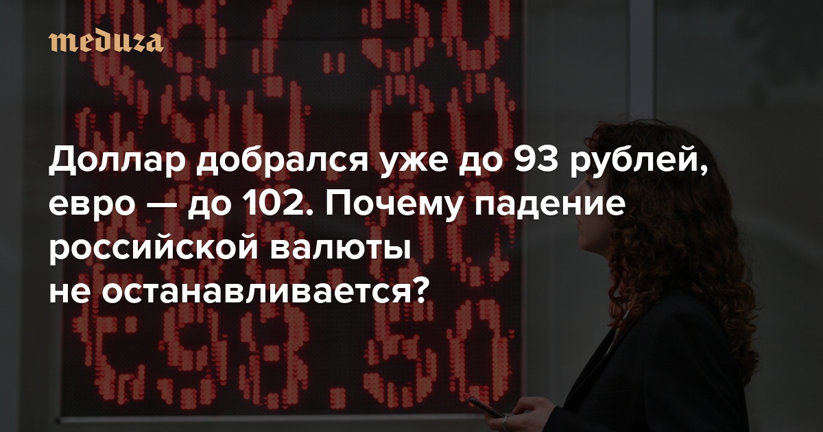 Доллар добрался уже до 93 рублей, евро — до 102. Почему падение российской валюты не останавливается?