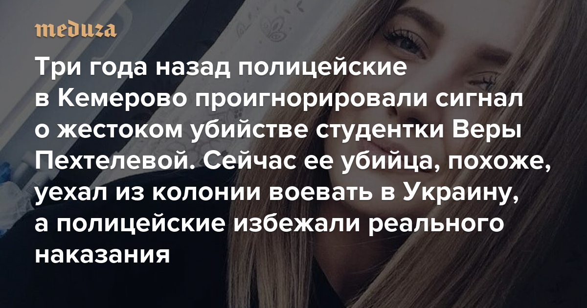 Три года назад полицейские в Кемерово проигнорировали сигнал о жестоком убийстве студентки Веры Пехтелевой Сейчас ее убийца, похоже, освободился из колонии и уехал воевать в Украину, а полицейские избежали реального наказания