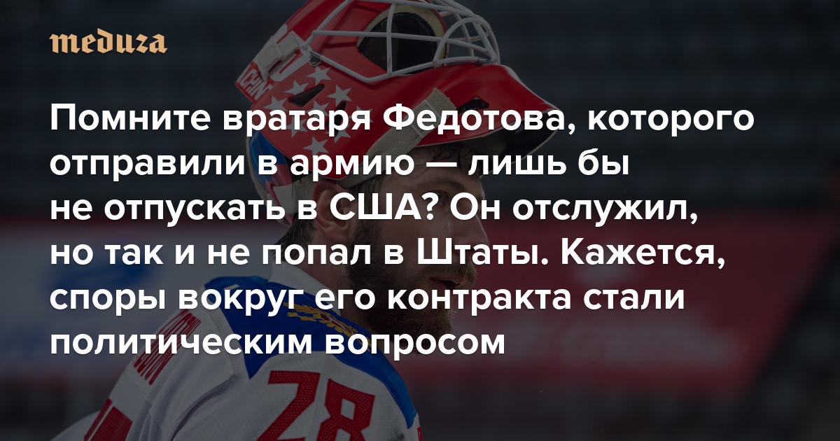 Помните вратаря Федотова, которого отправили в армию — лишь бы не отпускать в США? Он отслужил, но так и не попал в Штаты Кажется, споры вокруг его контракта стали политическим вопросом