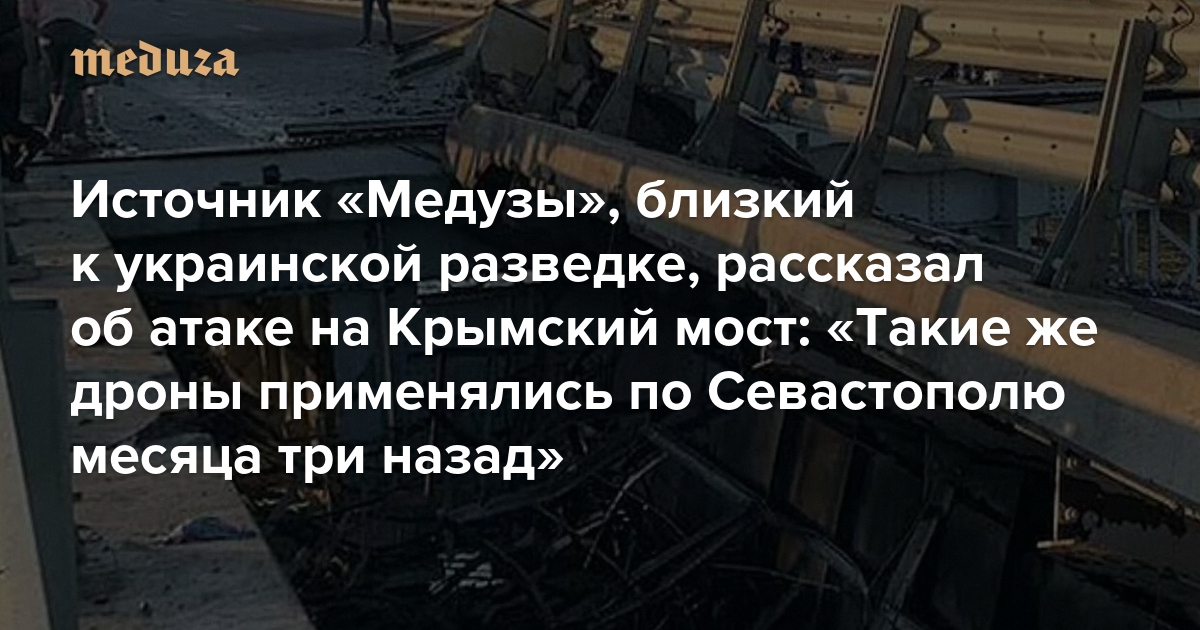 Источник «Медузы», близкий к украинской разведке, рассказал об атаке на Крымский мост: «Такие же дроны применялись по Севастополю месяца три назад»