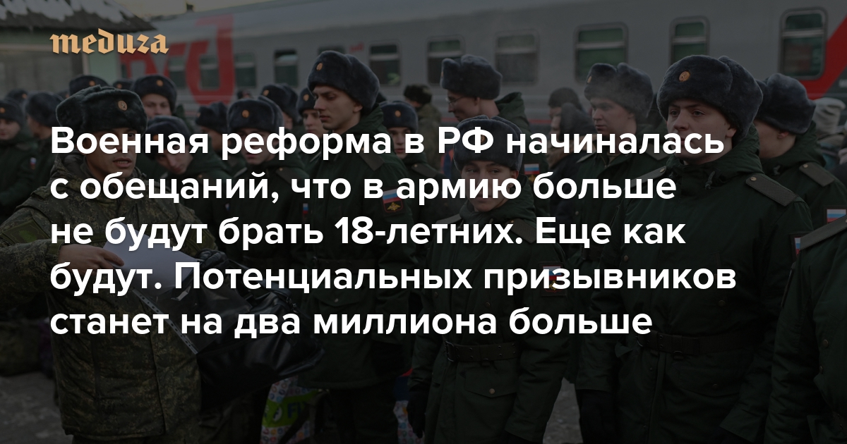 Военная реформа в РФ начиналась с обещаний, что в армию больше не будут брать 18-летних. Еще как будут Потенциальных призывников через несколько лет станет на два с лишним миллиона больше