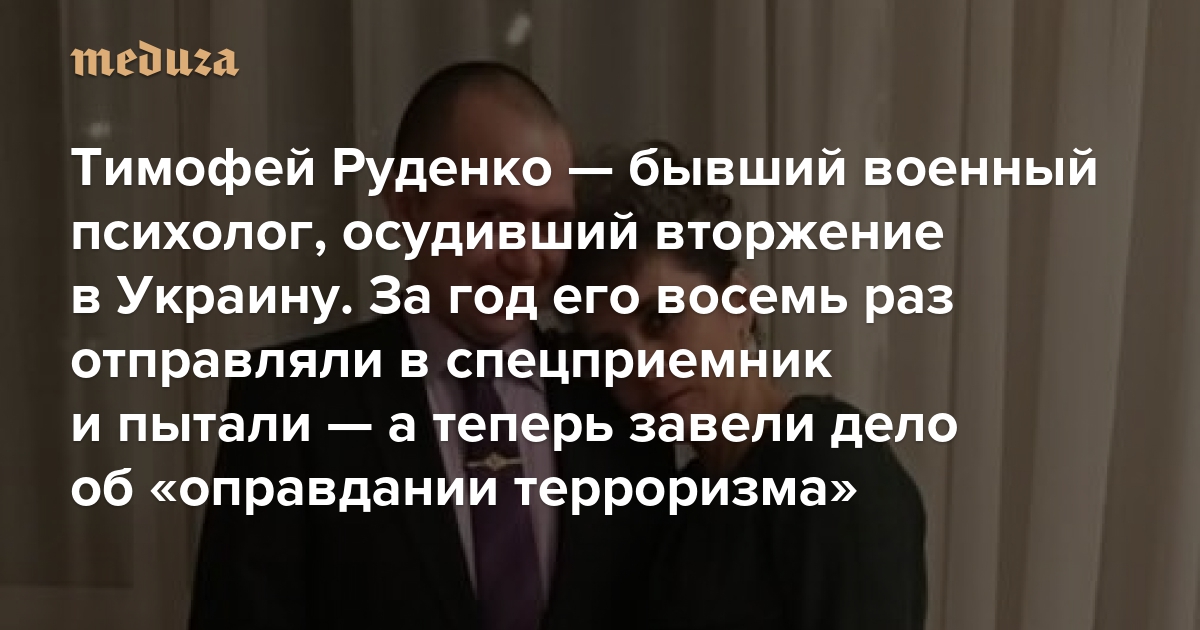 Тимофей Руденко — бывший военный психолог, осудивший вторжение в Украину. За год его восемь раз отправляли в спецприемник и пытали — а теперь завели дело об «оправдании терроризма» Вот его история