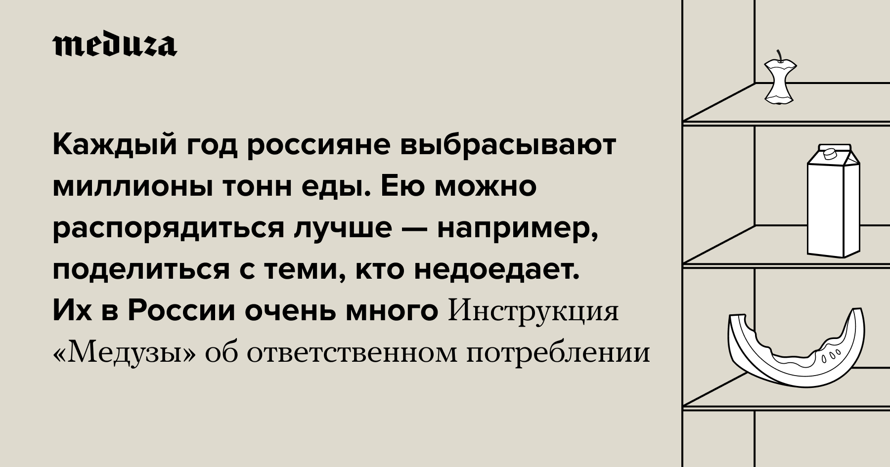 Каждый год россияне выбрасывают миллионы тонн еды. Ею можно распорядиться лучше — например, поделиться с теми, кто недоедает. Их в России очень много Инструкция «Медузы» об ответственном потреблении