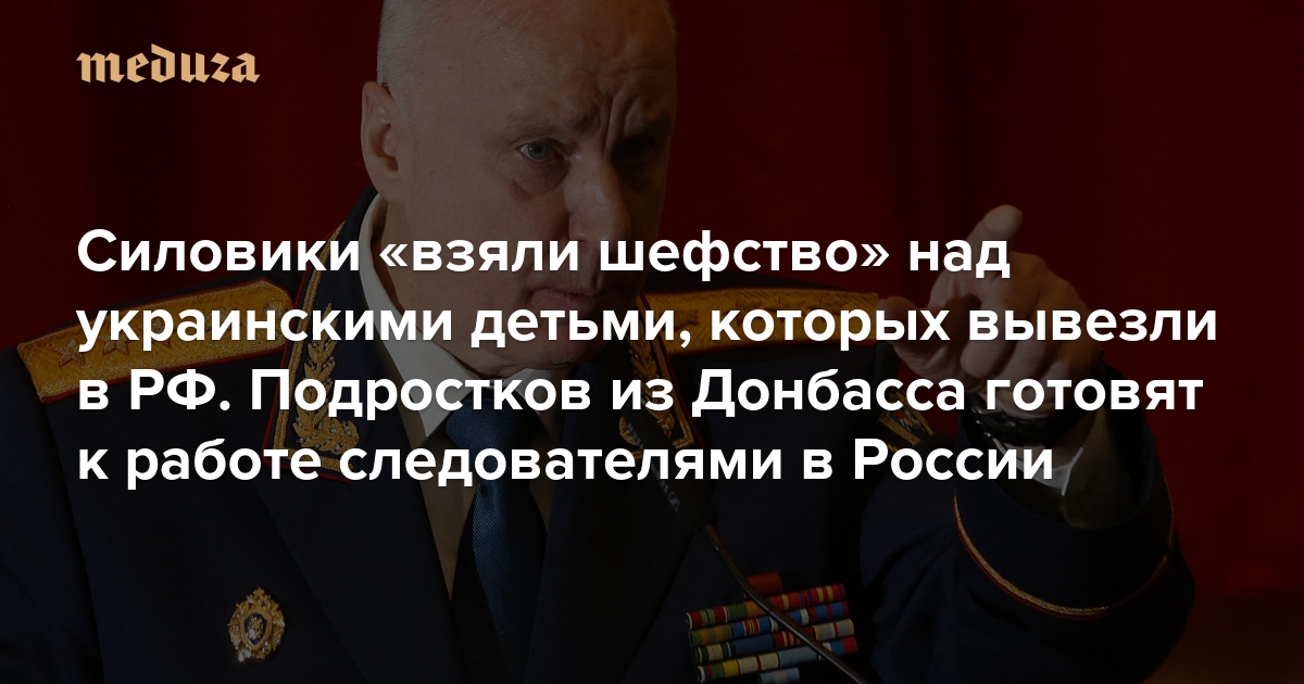 Следственный комитет во главе с Александром Бастрыкиным после начала полномасштабного вторжения в Украину «взял шефство» над вывезенными в Россию детьми с оккупированных территорий. Одним из направлений работы силовиков стало распределение подростков в кадетские корпуса, подведомственные СК. Издание «Верстка» рассказывает, как украинских подростков учат «любить отчизну» и готовят к работе следователями в России. С любезного разрешения редакции «Медуза» публикует этот текст целиком.